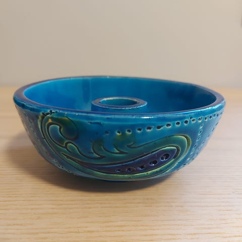 bitossi rimini blue aldo londi italiensk keramikk lysestake vintage mid century made in italy blå keramikk design interiør