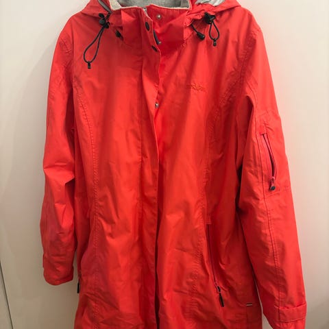 Jean Paul Regntøy jakke i blå farge, størrelse M for dame. Laget av nylon materiale, egnet som yttertøy ved regnvær. Veldig flott passform. Praktisk med at man kan løfte opp nederst på arm for å få frem refleks ved tur i mørket.
