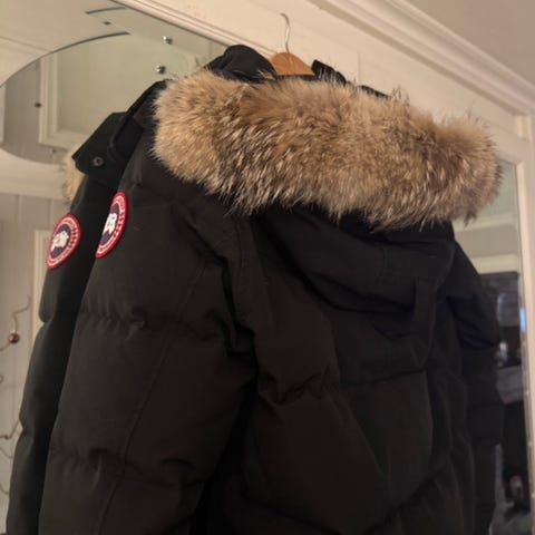 Jakke i god stand. Har noen små, lite synlige bruksspor på ermene, men er ellers hel og pen.