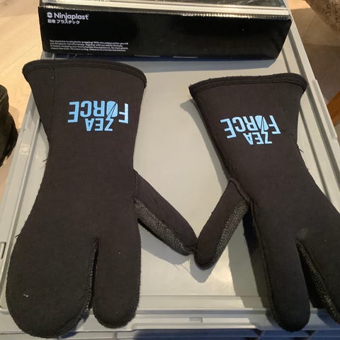 Hanskene er kun brukt en gang ved vinterbading og sokkene er aldri brukt. Kjøpt som en pakke fra ICEFJORD til full pris 674,- selges til halv pris.
