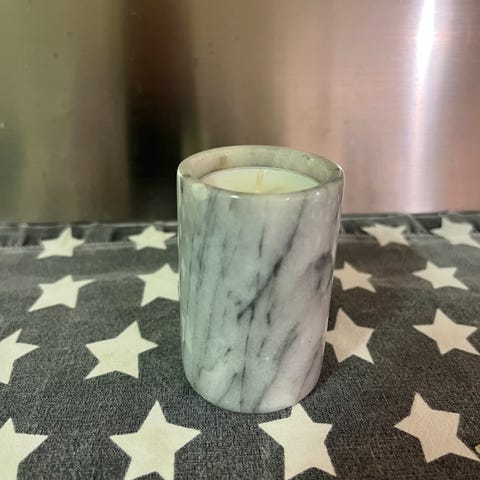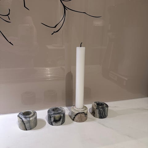 Selger en utrolig lekker marmor lysestatk i klassisk carrerra marmor.