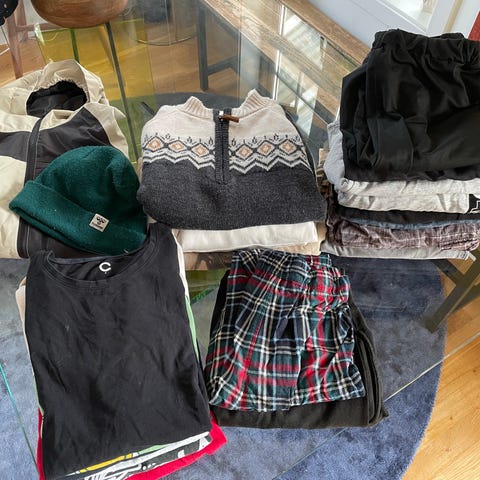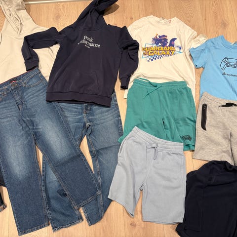 Inneholder bla. bukser, gensere (tykk og tynn), hettegenser, hettejakke, shortser, basketballtrøye.