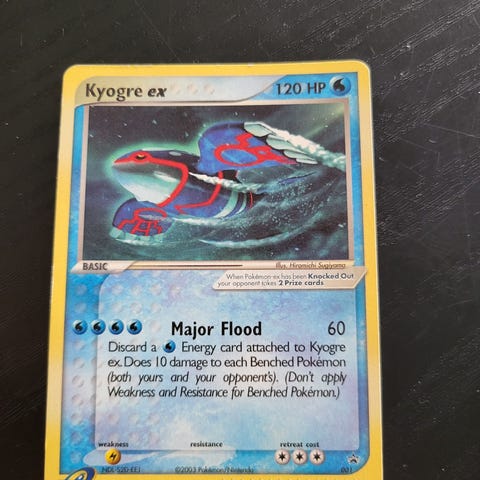 Et godt slitt Kyogre EX Holo pokemonkort