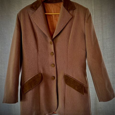 Vintage lårlang blazer fra det italienske merket L’altra Moda. I en blanding av 60 % acetat og 40 % viskose. Italiensk størrelse 42, passer XS/S.