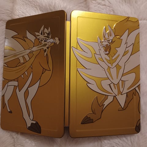 Søkeord: Pokémon, Pokemon Sword Shield, steelcase, steelbook, Gold Duo, limited edition, samlerutgave, Nintendo Switch, Zacian, Zamazenta, Pokémon samlerobjekt