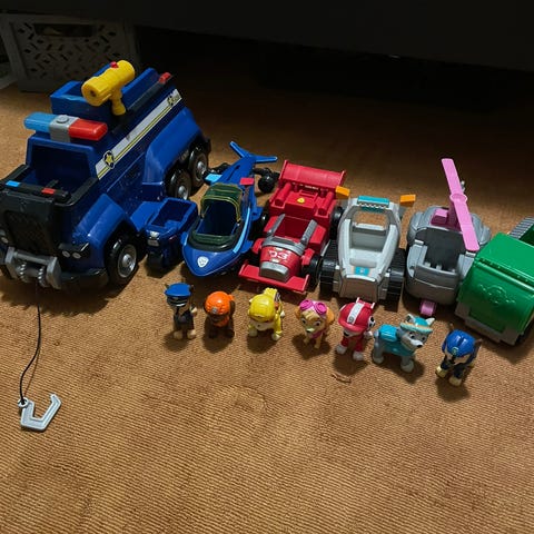 Masse Paw Patrol med buss, lite tÄrn, bÄt, mange biler, figurer og bÞker med figurer og kart. Perfekt for en paw patrol elsker!