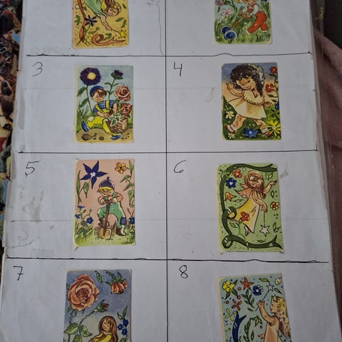 Gamle Norske Kortforlaget glansbilder mange m glitter. Selges for 5 kr pr stk pp Fine gule baksider,nr8,9 noen m svake merker Har bank, Vipps og PayPal. Samsender