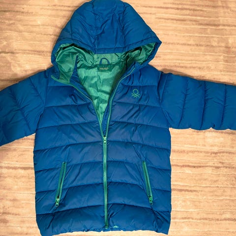 Benetton gutt polo genser i blå farge, størrelse 152. Laget av bomullsmateriale. Passer for barn.