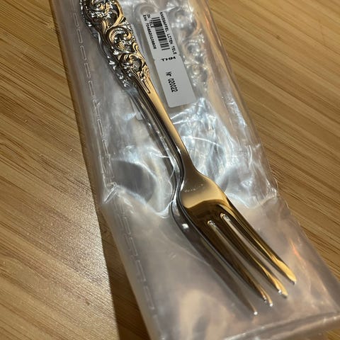 Opphøiet Rose12 stk. kakegafler kom med bud har dekorative blomsterdetaljer på skaftet. Egnet for bruk ved borddekking og servering. 14.7 cm nypris 22000kr 1840 pr stk 830 s kan hentes i Solbergelva dette er billig