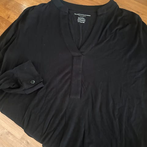 Blå bluse fra Majestic Filatures. God stretch mykt stoff, vide ermer, buet kant nede. Lite brukt.