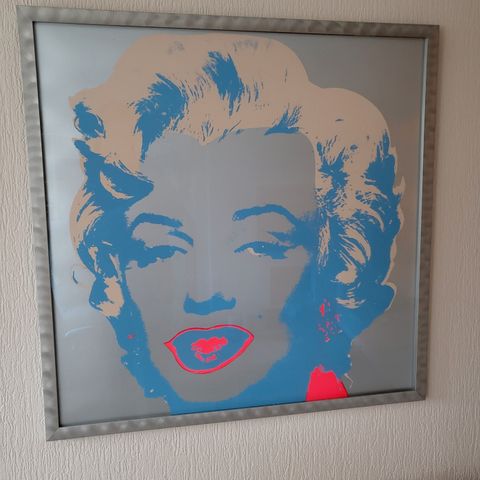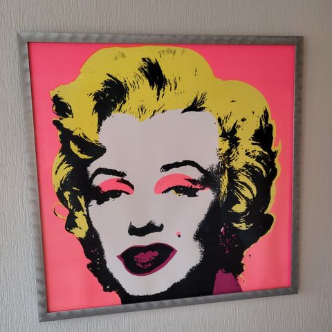 Andy Warhol Marilyn Monroe Pop Art plakat med fargerik silketrykkstil. Motiv av Marilyn Monroe i ikonisk popkunst-design med gule, rosa, blå og røde fargetoner. Kvadratisk format, egnet for veggdekorasjon.