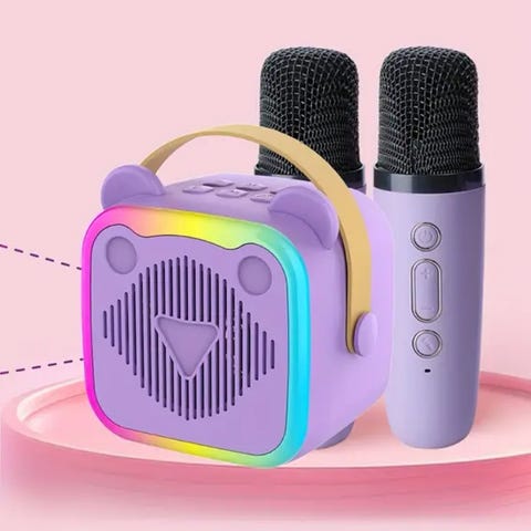 Kompakt, USB-oppladbart]. System med 2 trådløse mikrofoner - Livlige discolys, oppladbart litiumbatteri, USB-lading, ideell for familiesammenkomster, bursdags- og Valentinsdagsgaver, julegaver, karaokeopplevelse.