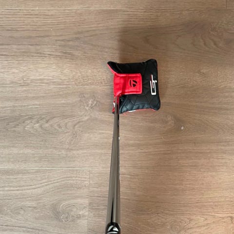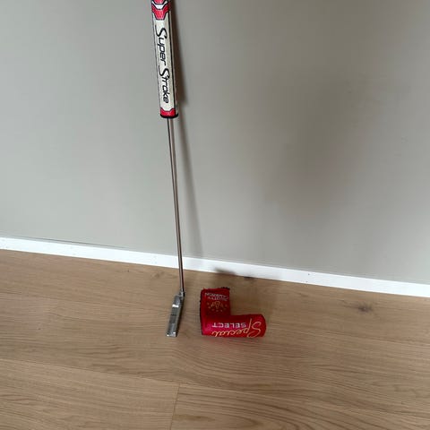 TaylorMade Spider SX-32 putter med blått hode og svart KBS skaft. Putteren har en lengde på 34 tommer.