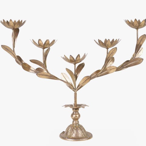 Veldig fin lysestake 5 armet gullfarget. Den er laget av lett metall og ser utrolig fin ut. Har to stykker. Perfekt for bryllup, konfirmasjon, besøk eller interiør hjemme. Kan sendes for 69kr via vipps.