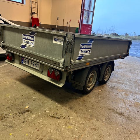 Pent brukt TYSSE NF 6390 - 2600 kg selges rimelig. Kassemål 180 cm x 320 cm. Dette er en proff-henger med mange bruksområder. Den har kraftig stålplate i bunnen og er konstruert for å kunne frakte mini-maskiner. Sidekarmer og påbygningskarmer i aluminium med avtagbare hjørnestolper i stål. Leveres med verktøykasse samt støttebein bak for trygg lasting når hengeren er frikoblet fra bilen. Tilhengeren er lagret innendørs når den ikke har vært i bruk. Nypris for denne er ca. kr. 100.000,-