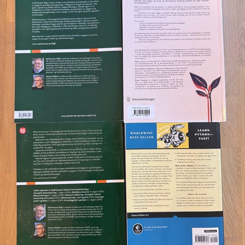 Samling av bøker innen økonomi og administrasjon med temaer som logistikk, strategi, innkjøp, forhandlinger og lean. Bøkene dekker ulike aspekter av økonomistyring, bærekraftig logistikk, innkjøpsprosesser og strategisk planlegging.