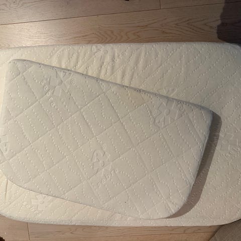 Utrolig fin bedside crib med følgende 3 laken. Vi har dessverre aldri brukt den da vi valgte heller å samsove i sengen. Kjøpt brukt!