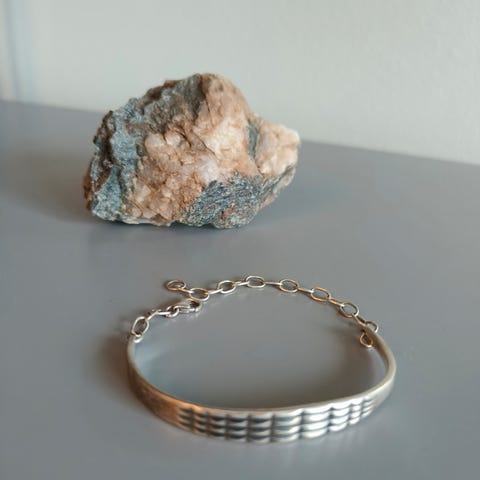 Materiale: Det er stemplet med "925 S", som indikerer at det er laget av sterling sølv, en legering som inneholder 92,5 % rent sølv.