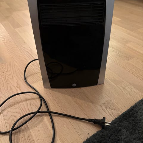 Calor varmeovn med effekt på 2 kW. Fargen er grå. En bærbar elektrisk varmeovn egnet for oppvarming av mindre rom.