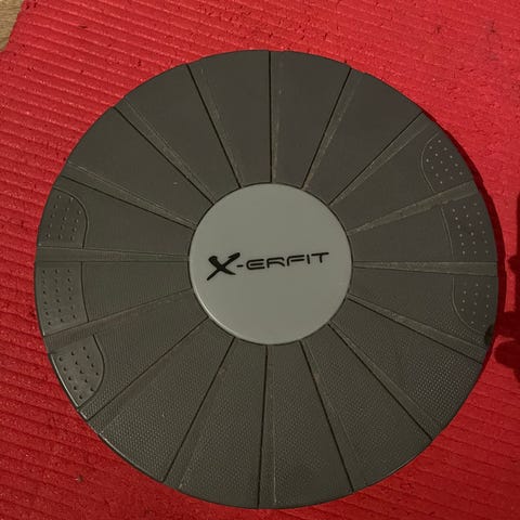 Balanseskive i svart plastmateriale med blå midtseksjon. Designet for balanse- og stabilitetstrening. Passer for bruk i trenings- og rehabiliteringssituasjoner.