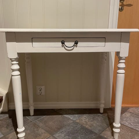 Antikk bord fra India ,Bordet er malt hvitt på bordbein og ramme . Originalfargen på bordplaten. Hele bordet er heltre, av gummitre. Kan leveres på Tysnes /Nordtveitgrend -Sveio-Bjørnefjorden.