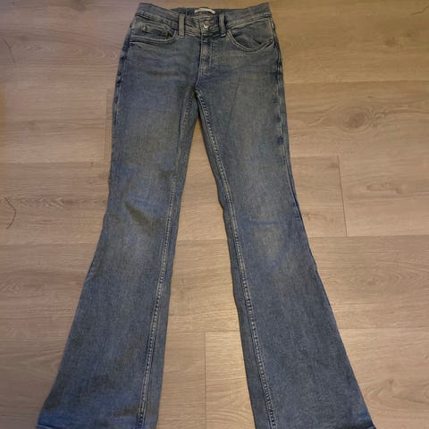 Gina Tricot bomullsbukse i blå farge, størrelse 34. Designet for kvinner/ ung voksen. Den svarte er brukt 1 gang til jul de 2 andre er helt nye med lapp på. Utsvingte ben nede. Fine bukser men ble vokst utav her