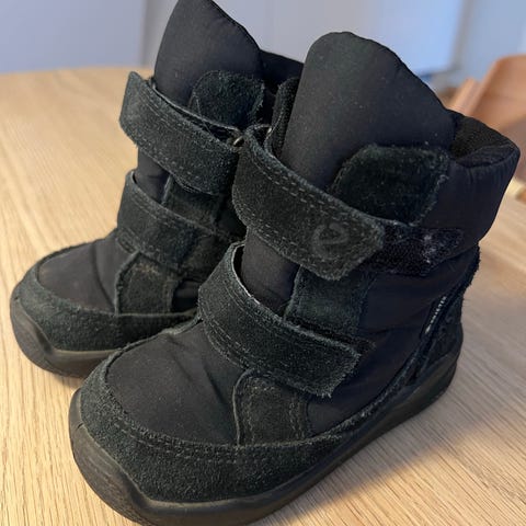 ECCO Barnevintersko for unisex i størrelse 22, farge svart. Skoene har borrelås for enkel justering og lukking. Sålen er laget for godt grep og stabilitet. Passer for barn i kaldt vær.
