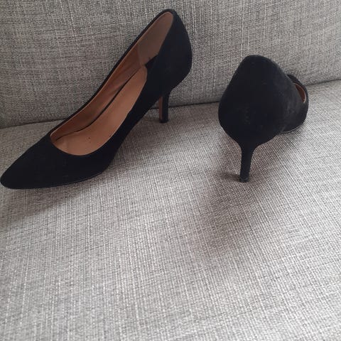 Skoene er pent brukt og i god stand. Ingen store skader, kun normale bruksmerker. Komfortable å ha på og ser veldig elegante ut.