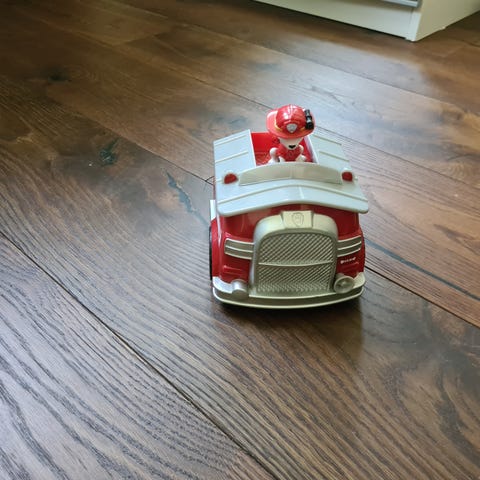 Paw Patrol Marshall brannbil leketøy i rødt med detaljer som inkluderer en figur av Marshall.