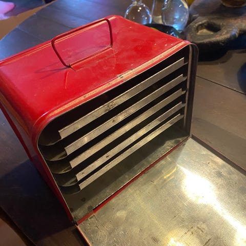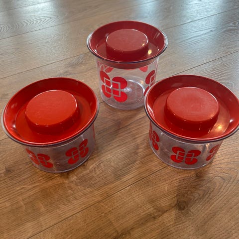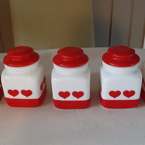 Retro oppbevaringsbokser og to kurver selges samlet.