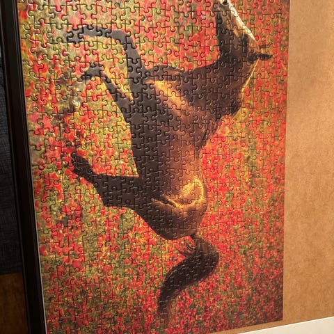 Fint puslespill selges. Motiv designet av Dominic Davison.. Puslet 1 gang, alle bitene er intakt.