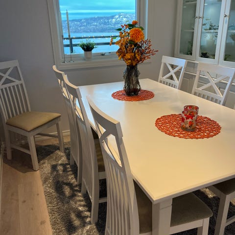 Perfekt bord til hverdags uten ileggsplatene og perfekt til besøk.