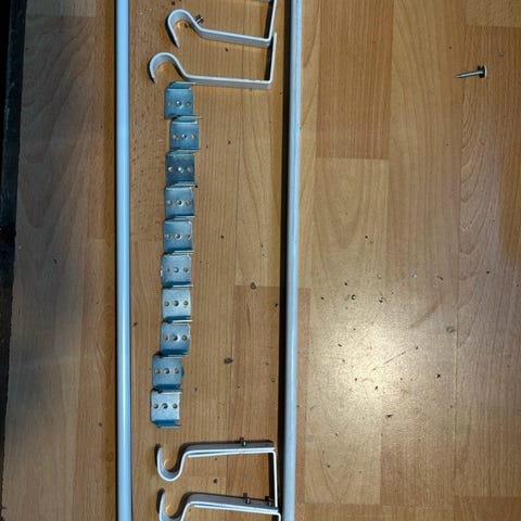 6 stk feste/oppheng til stengene følger med.