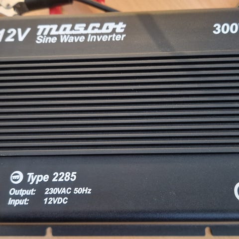 Power inverter, vekselretter som konverterer fra 12v DC til 220V AC selges.