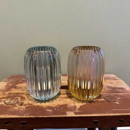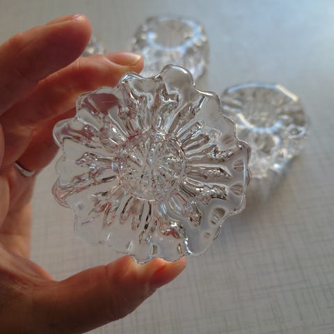 💙 lysestake glass, pressglass, retro lysestake, vintage glass, telysholder, kronelys, skandinavisk design, finsk, bobler, striper, dråper 💙