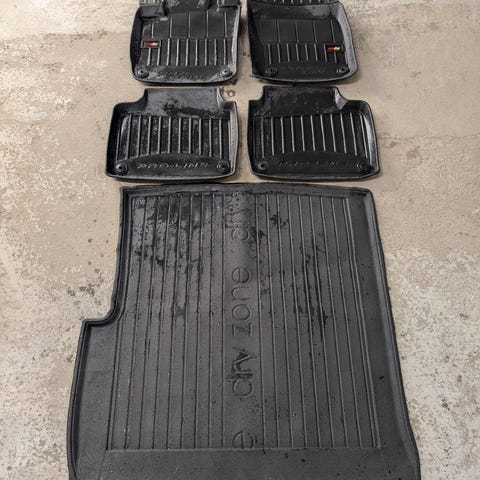 Vi har et sett velholdte og pent brukte bilmatter til salgs. Mattene er lite brukt, og frakt er tilgjengelig.