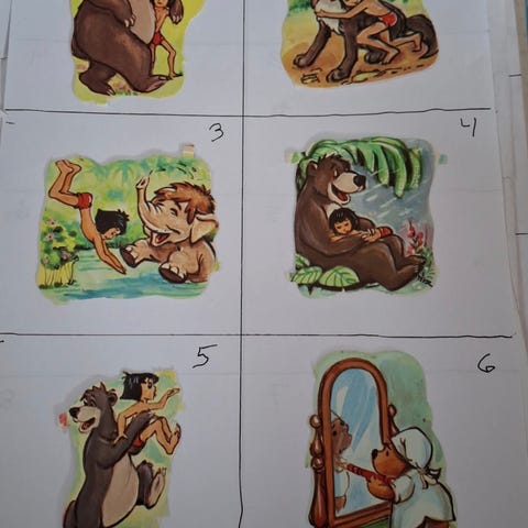 Gamle Svensk E.O nr 9004 Disney Mowgli glansbilder. Selges kr 15 pr stk pp Fine Gule baksider, Har bank,Vipps og PayPal Samsender