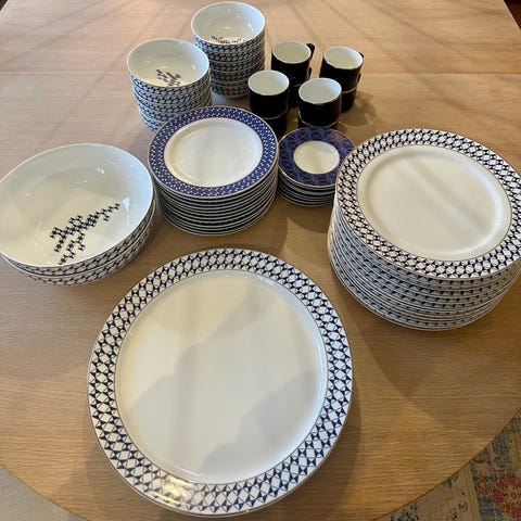 Et kakefat på stett og et flatt kakefat. Fra Jadeland. Selges samlet for 380kr