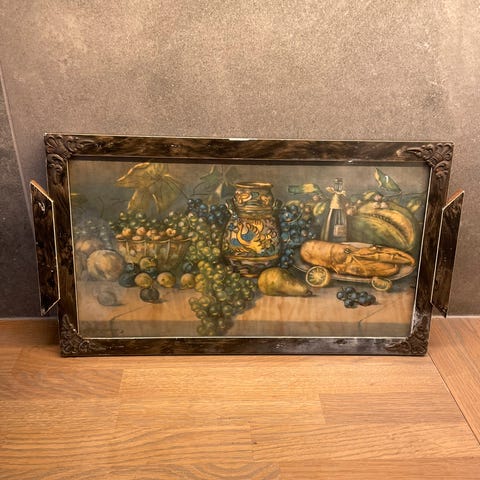 Stort Gammelt engelsk 1800 talls serveringsbrett i presset blekk , 62x 46 cm