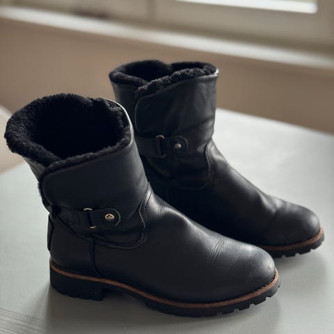 Forede skinnstøvletter fra Panama Jack. Godt brukt, men mye bruk igjen. Kan med fordel bytte ut ullsålen da den er slitt ved hælen