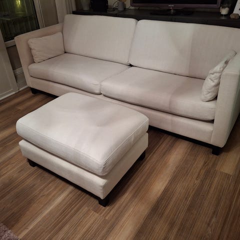 Pen, brukt 4 seters sofa. Kan deles i 2 deler for transport. Må hentes (men kan være behjelpelig med å bære ned to trapper)
