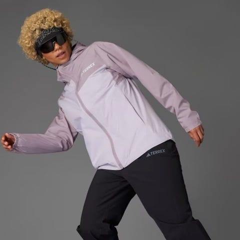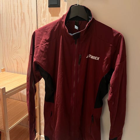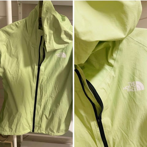 Pent brukt regnjakke med hette og liten lomme - materialet er veldig lett, vil si det er mer regn-beskyttende enn regntett. Passer perfekt til løping i lett regnvær eller yr