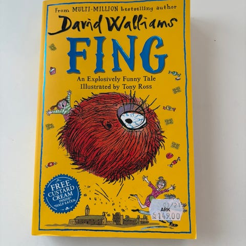 Boken Fing selges. Skrevet av David Walliams.
