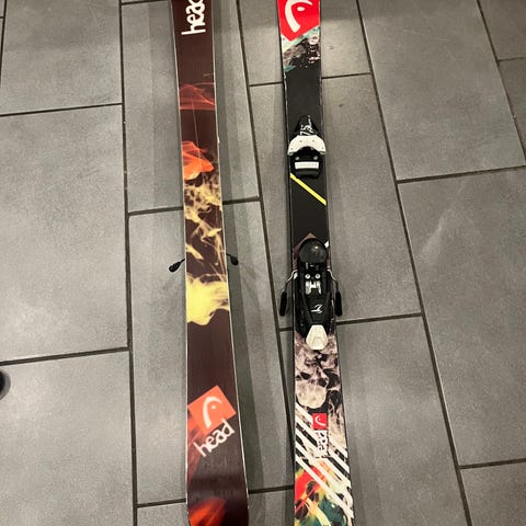 Pent brukte slalåmski med bindinger til barn. Lengde 107