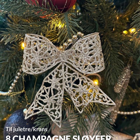 Ny gullsløyfe til for eksempel juletre, selges for 30,-. Kjøpt ny for 299,-. Mål står på bildene. Festes med clips som er bakpå sløyfen✨