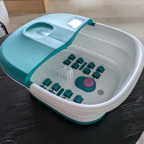 Sammenleggbart fotbad med 4 massasjeruller. Brukt 1 gang.