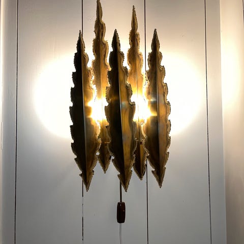 Vintage messinglampe røkfarget kuppel