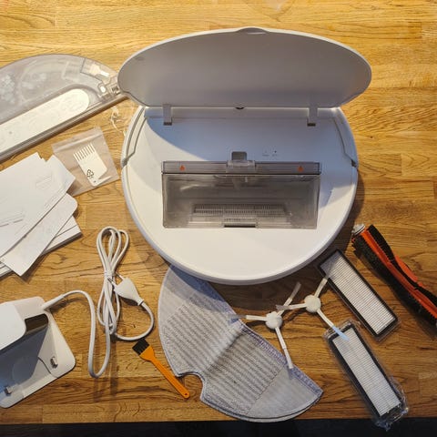 Pent brukt og fungerer som den skal. Kan både støvsuge og vaske gulv. Brukes lett med eller uten Mi Home app direkte fra telefon.