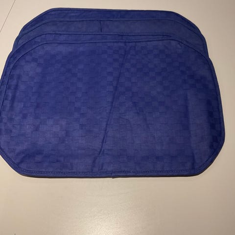 4 blå kuvertbrikker / spisebrikker fra Marie Sohl selges samlet til oppgitt pris. Ikke brukt. Mål, se bilder.