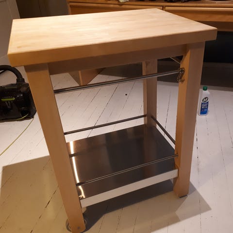 Selger trancherbord i bjørk grunnet flytting. Brukt som improvisorisk kjøkkenøy.
